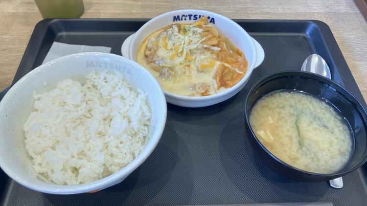 【食の記録】松屋さんの「煮込みキャベツのチーズトマトハンバーグ定食」を頂きました。【2026/3/17発売】
