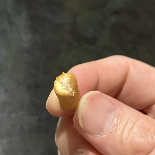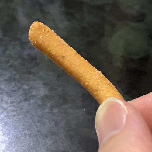 表面コンソメパウダーはやや強め、中のポテトはカリッと食感でマッシュポテト系の味わいです。とても美味しかったです。